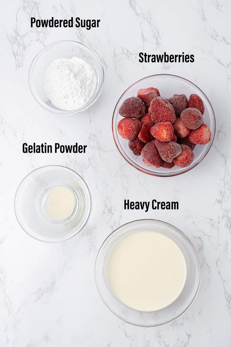 ژلاتین - ژلاتین موس را غلیظ می کند. من موس توت فرنگی ام را با پودر ژلاتین درست می کنم، اما شما می توانید از ورق های ژلاتین یا یکی از این جایگزین های ژلاتین نیز استفاده کنید .