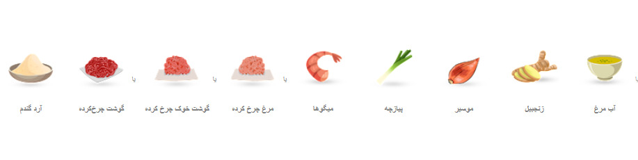 ۲۰۰ گرم گوشت چرخ کرده (گوشت خوک، گوشت گاو یا مرغ)
