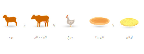 - ۱ کیلوگرم (۲.۲ پوند) گوشت گاو یا گوسفند