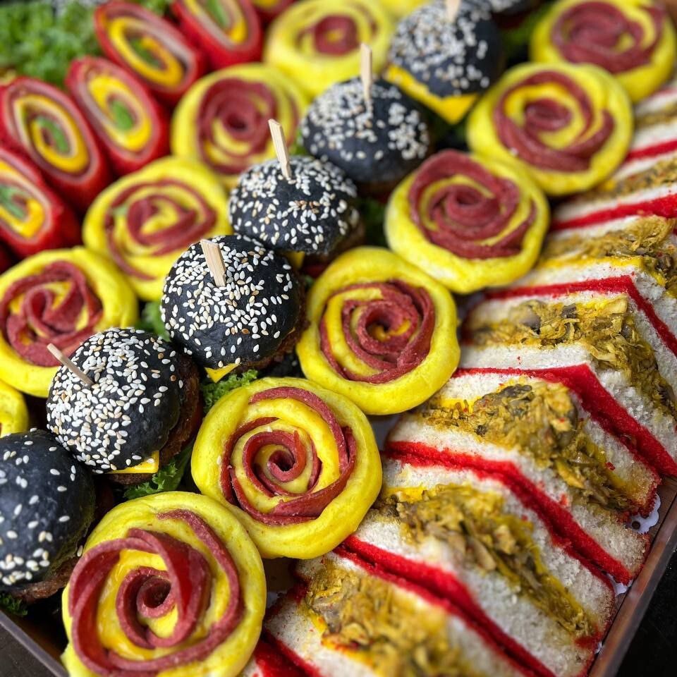 • طراحی حرفه ای با نان های رنگی قرمز و زرد