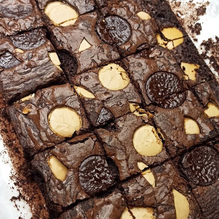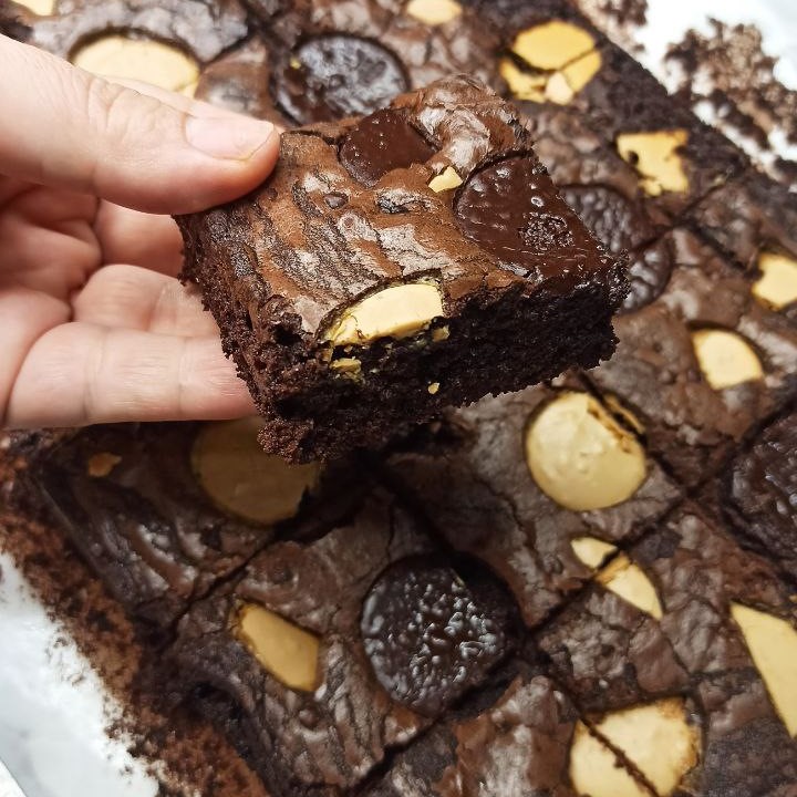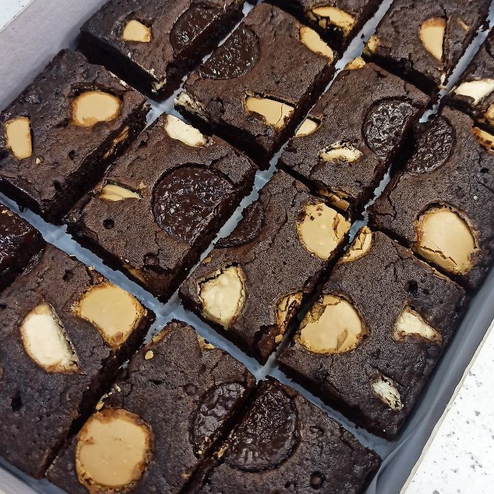 این براونی ها با بهترین شکلات های مرغوب درست شدن، بافتشون نرم و مرطوبه و هر لقمه اش پر از عطر و طعم عمیق شکلاته. برای خوشمزه تر و زیباتر شدن، روشون با شکلات سفید و بیسکویت شکلاتی تزئین شده که هم چشم رو می بره، هم ذائقه رو.